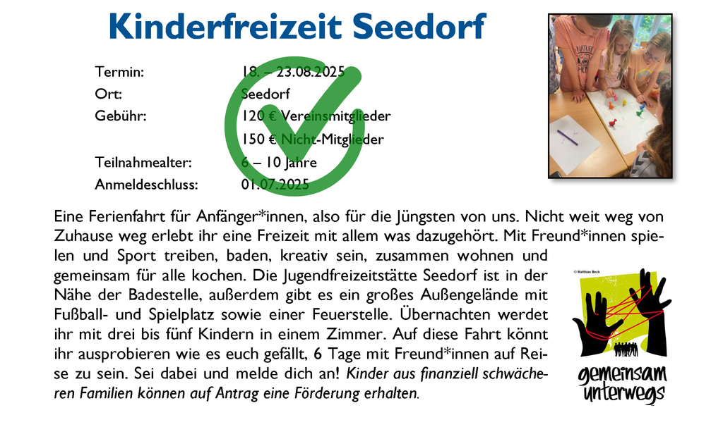 Bitte beachten: Sollten Veranstaltungen ausgebucht sein, könnt ihr euch trotzdem anmelden! Ggf. kann die Teilnehmerzahl noch erhöht werden!